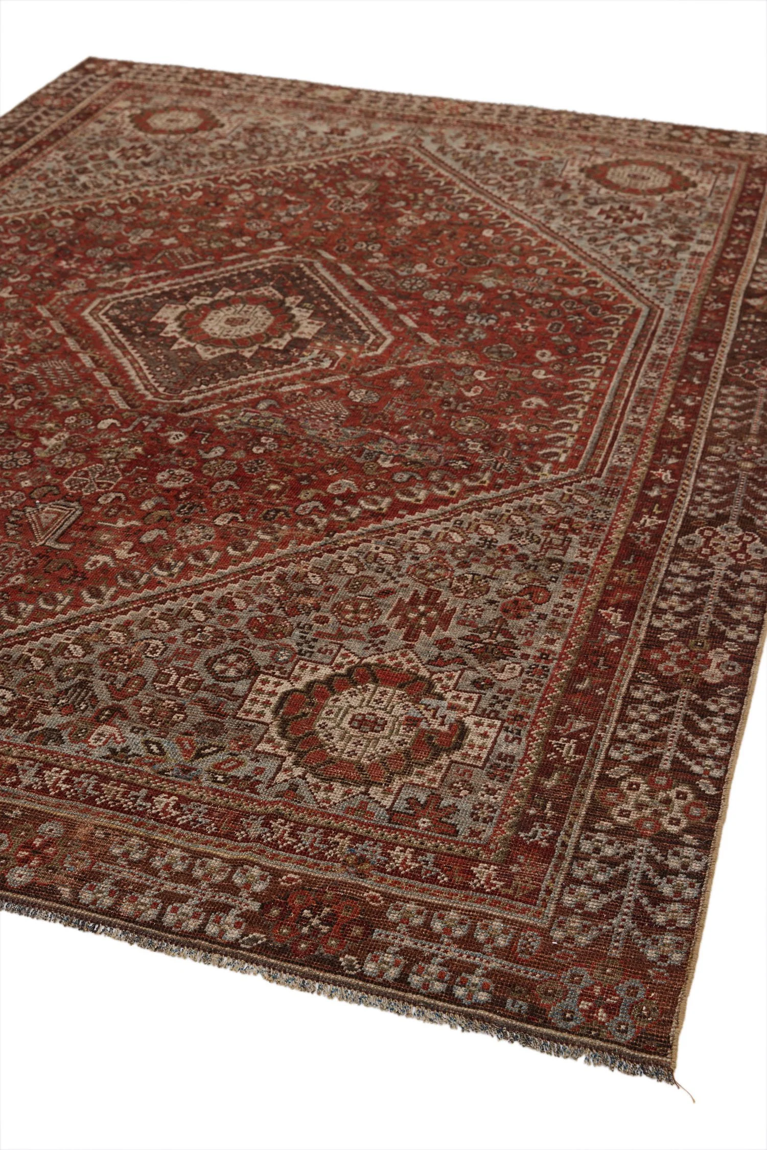 The allover pattern creates visual density across the field, a repeating lattice that provides rhythm without rigidity. From this patterned ground, the diamond medallion emerges as a focal point that never quite dominates, its integration into the surrounding design showing the weaver's skill at balancing elements. The borders frame the interior with definition while maintaining the freehand quality characteristic of village production, their drawing less precise than urban workshop pieces but no less effective for it. Natural wear has softened the distinction between pattern and ground, creating layers of visual information that reveal themselves gradually.