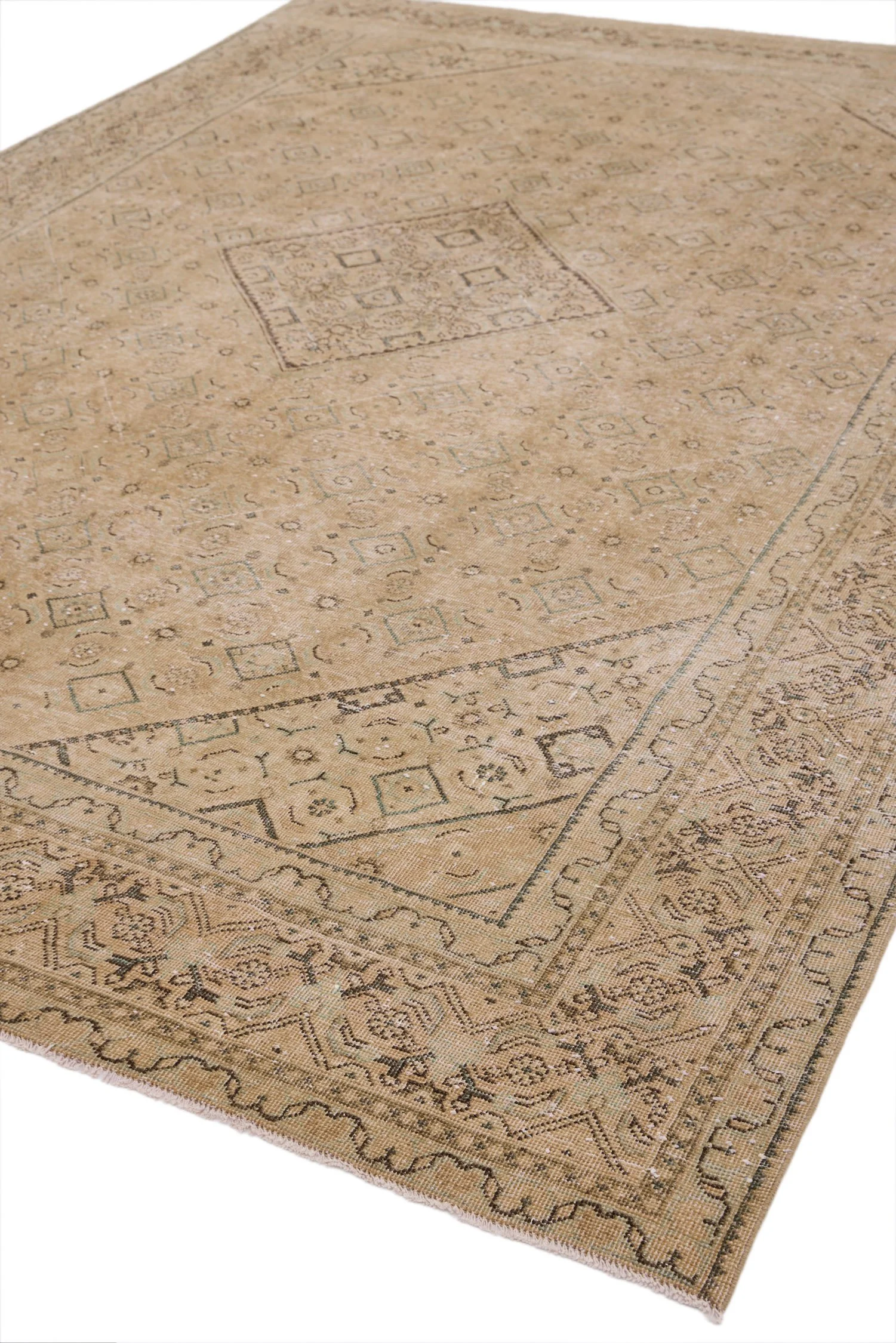 Featuring a refined allover Herati pattern, this Tabriz rug achieves remarkable balance between formality and fluidity through its symmetrical layout. The central medallion merges gracefully with the surrounding floral latticework, creating a seamless visual flow. Elongated arabesques and elegant corner motifs frame the composition with architectural precision, while the intricate border completes the design with classical restraint. This harmonious arrangement of elements creates a quiet, refined aesthetic ideal for sophisticated interiors.