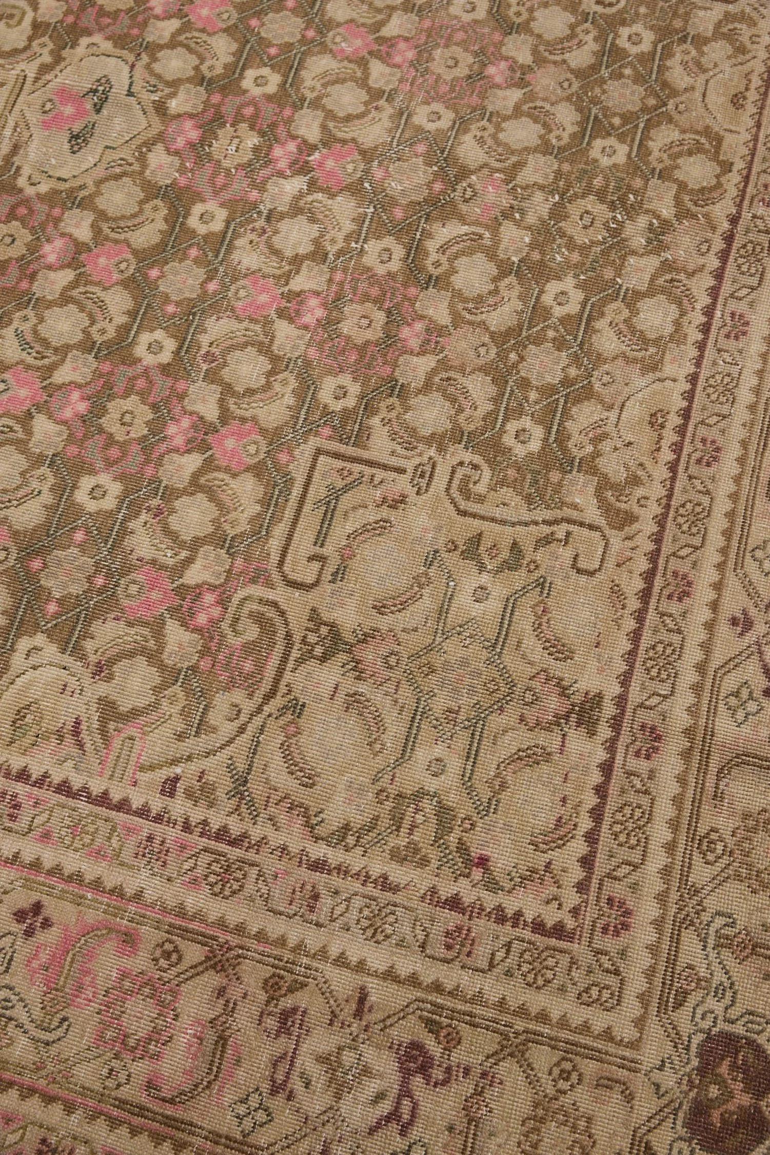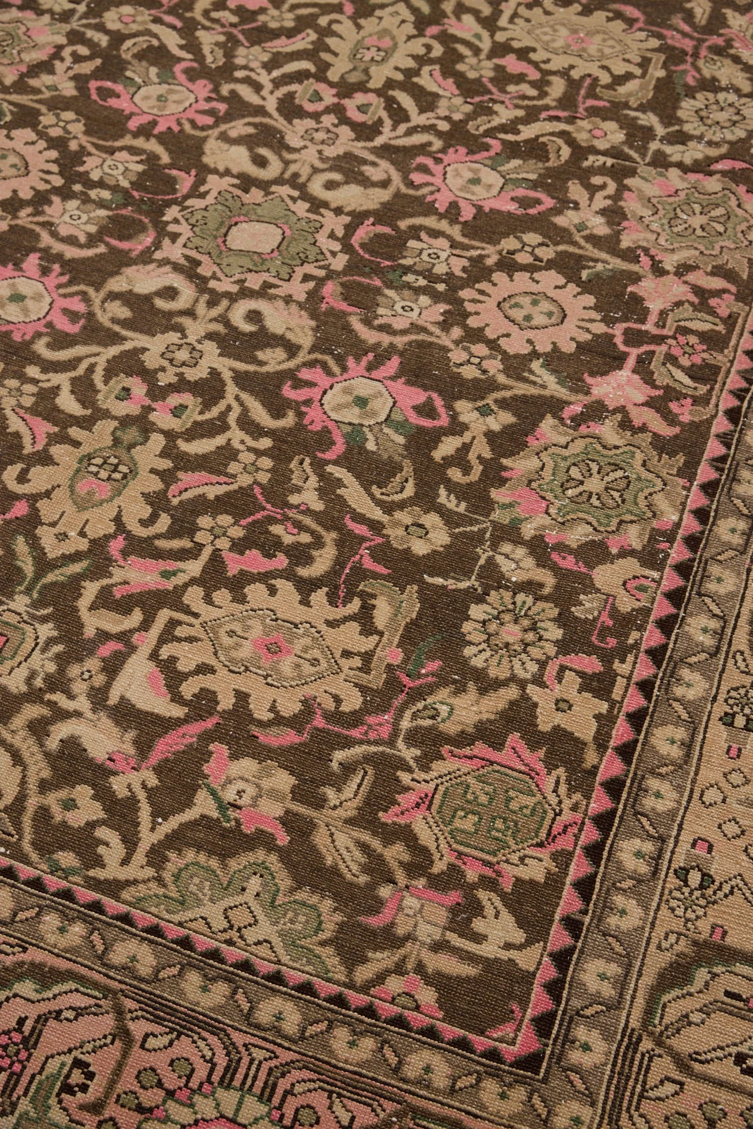 Heriz rugs with naturally aged patinas appeal to those who appreciate geometric strength softened by time. The combination of bold angular design and muted coloring creates pieces that work within both traditional and contemporary settings, their graphic quality evident but not aggressive, their history apparent but not overwhelming. These rugs offer a way to introduce Persian weaving traditions with visual impact that feels grounded rather than formal, their naturally aged surfaces suggesting utility and endurance rather than precious preservation.