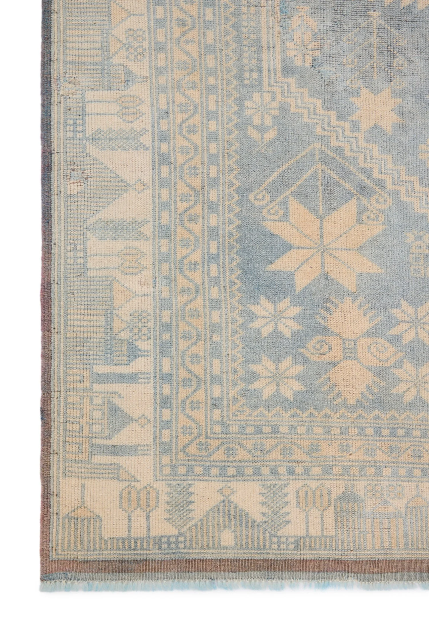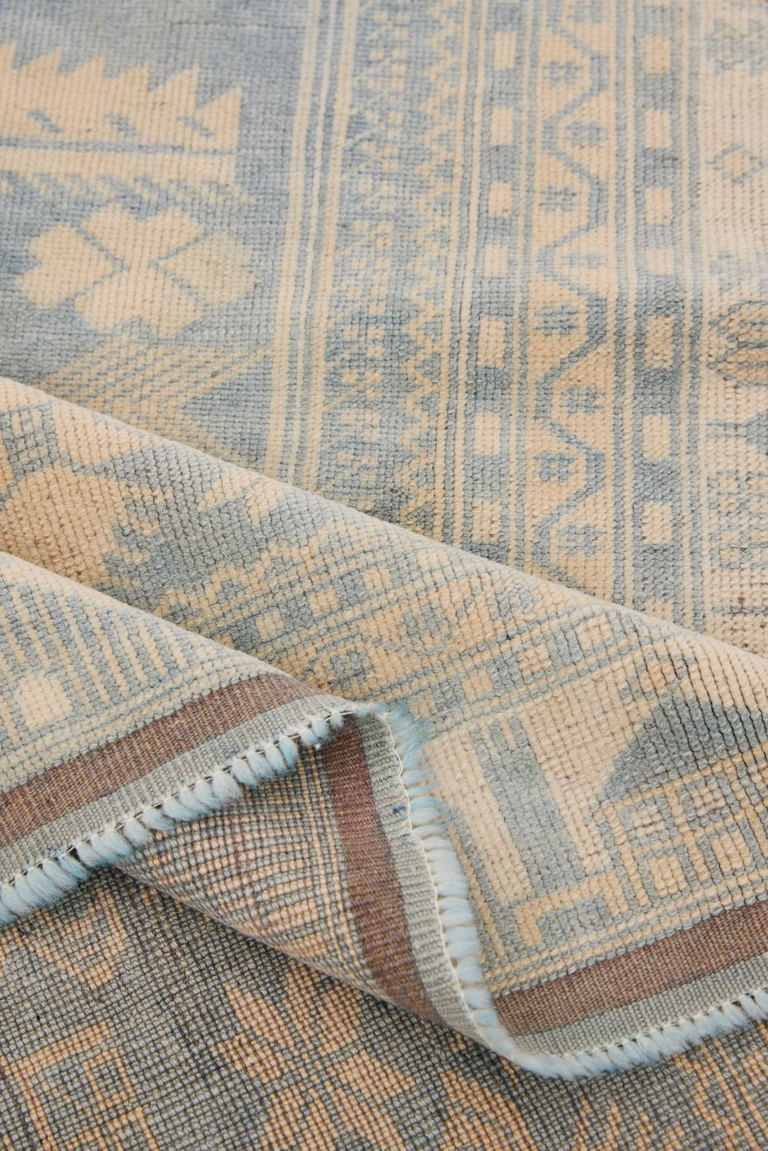 At 3'11" x 7'3", this prayer rug works in entryways, beside beds, in meditation spaces, or as a wall hanging where its architectural composition can be appreciated vertically. The terracotta and ivory palette brings warmth to spaces with neutral surroundings, while the traditional format adds cultural depth and historical reference. Its compact size suits apartments, powder rooms, or defining intimate zones within larger spaces. The spiritual symbolism inherent in the mihrab form makes it particularly meaningful for those seeking textiles with cultural significance, while the decorative strength allows it to function purely aesthetically in varied interior contexts.